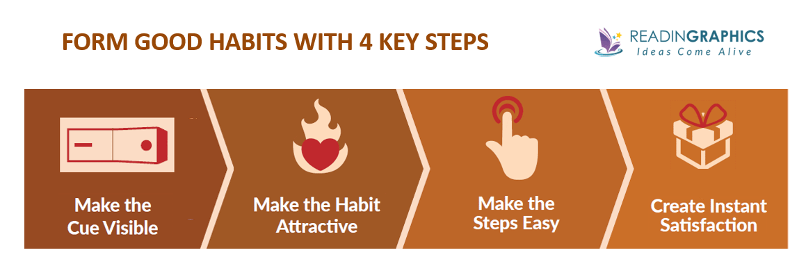 Habits are automatic because our brains pick up cues and predict certain rewards without conscious thought. To start a new habit, make your habit cues more obvious.