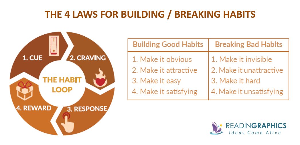 Using the habit loop, James Clear presents Four Laws of Behavior Change to build good habits and break bad ones: