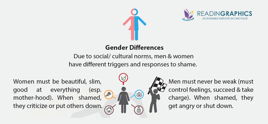 While shame affects both genders equally, social-cultural expectations create different shame triggers and responses for men vs women: