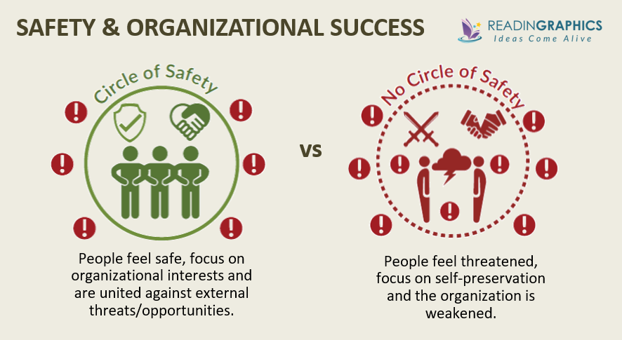 Traditionally, our family provides a Circle of Safety where we feel safe and supported. Inside the circle, we have a healthy balance of E.D.S.O. and low Cortisol levels. In organizations, Circles of Safety provide people with a sense of belonging and security. People feel valued and cared for, and trust that others will act in their interests. This facilitates communication, cooperation, problem-solving and innovation, allowing people to direct their attention to external threats and opportunities.  By contrast, when people feel threatened by internal politics and infighting, they turn their attention inward to focus on self-preservation, making the group more vulnerable as a whole.