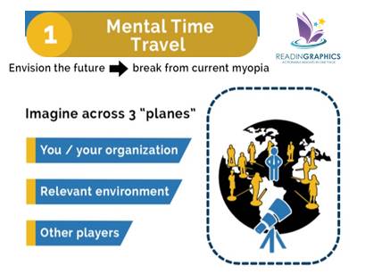 Focus your discussion and mental time-travel on the 3 planes of (i) you and your organization (ii) relevant environment and (iii) other players using these 3 steps: