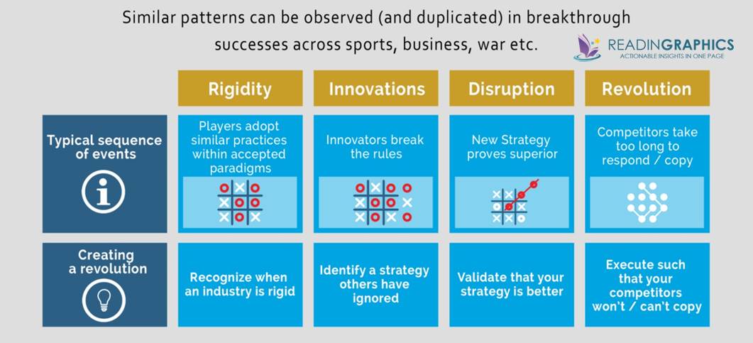 In all domains of competition – from business to sports to war – radical changes and breakthroughs follow a similar pattern. By understanding and recognizing this pattern, you can outthink your competition and create your own revolution:
