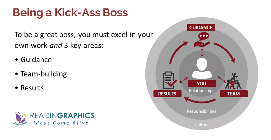 Bosses achieve results not by doing everything themselves, but by guiding a team to do so. Thus, they must excel in their own work and 3 key areas: