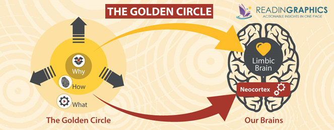 The Golden Circle helps us to understand why we do what we do, and it’s closely related to how we’re built biologically.  The most impactful and inspiring leaders and organizations communicate from inside-out. They start with WHY, and the WHATs are merely proof of their beliefs.