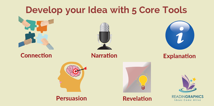 Once you have a throughline, you can start to build the elements to hang on it. Here’s an overview of the 5 core tools you can use to develop your idea.