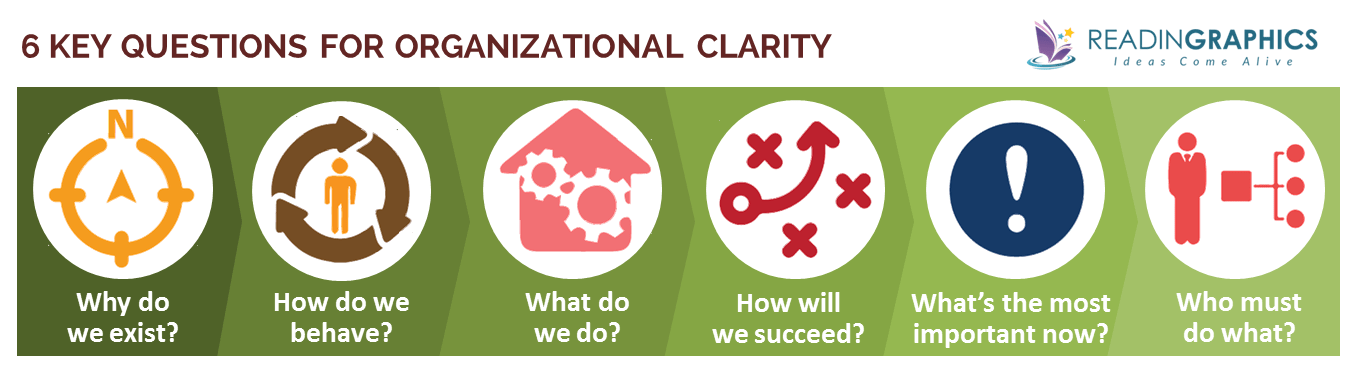 Without clarity, there can be no alignment. Lencioni presents 6 key questions which can be used by any leadership team to gain greater clarity.  In our complete 16-page version of The Advantage summary, we zoom in on each question in detail. In a nutshell, the 6 questions are: