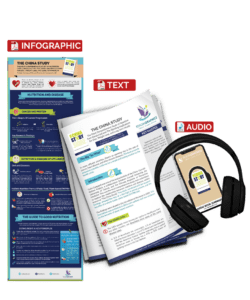 If you’d like to get a detailed outline of the research findings and health tips findings from The China Study, do check out our full book summary bundle. This includes an infographic, a 15-page text summary, and a 28-minute audio summary.