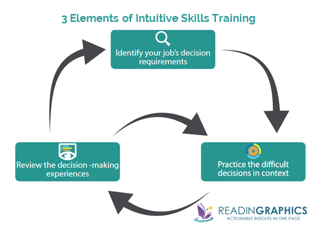 The solution is to steepen our learning curve using intuitive skills training. By practicing important decisions, we accumulate meaningful experience and condition our minds. This in turn improves our mental models, and our ability to recognize patterns and select optimal action scripts.The Power of Intuition summary_Intuitive Skills Training_3 componentsIn our complete book summary, we elaborate on the 3 key elements of intuitive skills training, including how to: