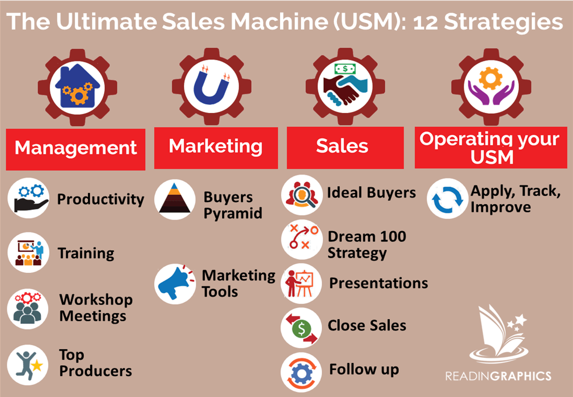 In our summary, we’ve organized the key insights into 4 parts: management, marketing, sales and operating your ultimate sales machine (USM). Anyone who’s involved in sales, marketing and/or running a business/team could use these ideas to improve their results.