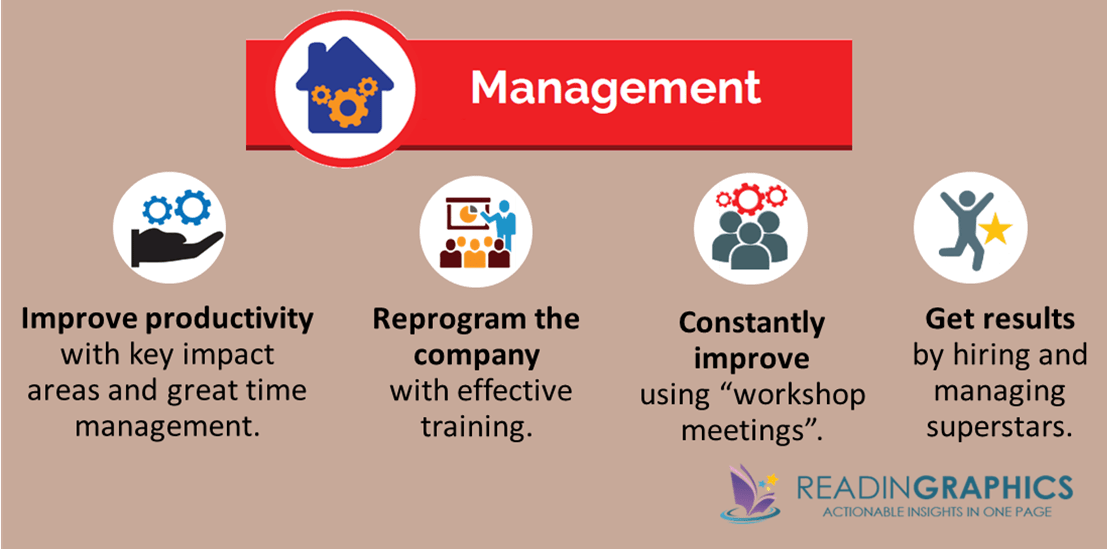 Leaders can save time and multiply their impact by focusing on key impact areas (areas that directly affect the bottomline) rather than try to manage every ad-hoc issue that comes up. Holmes also recommends 6 steps for great time management to apply in your whole organization to drastically improve your productivity. You can get more details in our full 17-page summary.