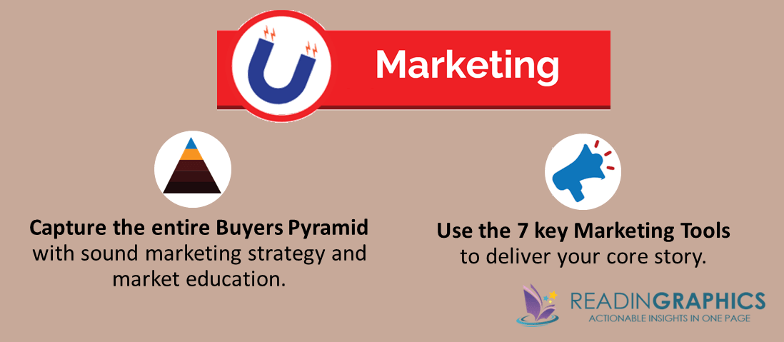 In our complete summary, we elaborate on the 7 key marketing tools you’d need to build your Ultimate Sales Machine. Identify the ones that will give you the best returns on investment, run workshops with your team to master these tools and keep finding ways to incorporate your core story.