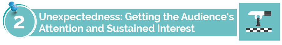 To get our audience’s attention, we need to evoke their emotion of surprise; Then, to keep their attention, we need to trigger and sustain their curiosity and interest.