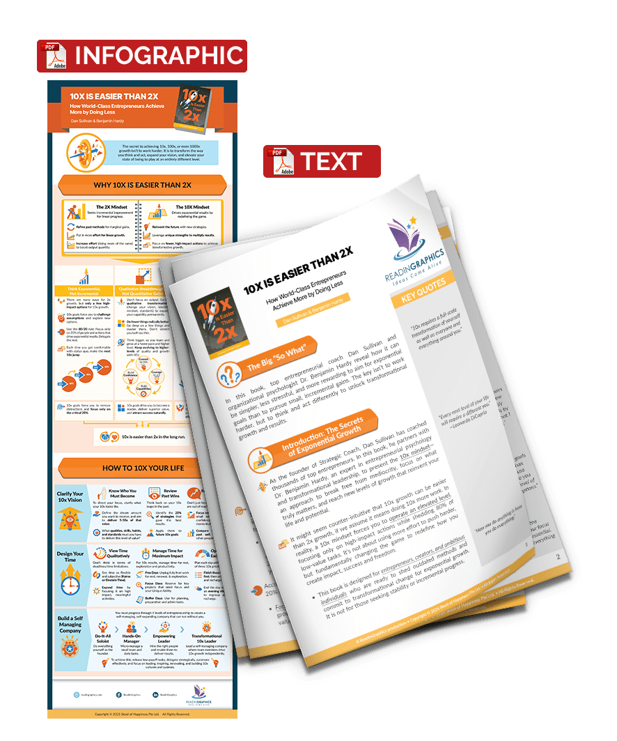 Is it possible to achieve better results by doing less? The answer is “yes!” In this book, top entrepreneurial coach Dan Sullivan and organizational psychologist Dr. Benjamin Hardy share how it can be simpler and more rewarding to aim for exponential goals rather than pursue small, incremental gains.