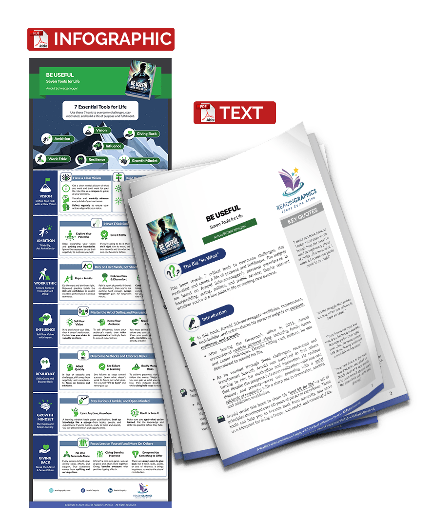 In this book, Arnold Schwarzenegger—champion bodybuilder, famous movie star, politician and businessman—shares his personal toolkit for life. This set of 7 key principles helped him to achieve massive successes in different phases of his career, overcome significant challenges, and pick himself up from the lowest points in his life. You, too, can use the tools to overcome adversity, make a positive impact, and build a meaningful life