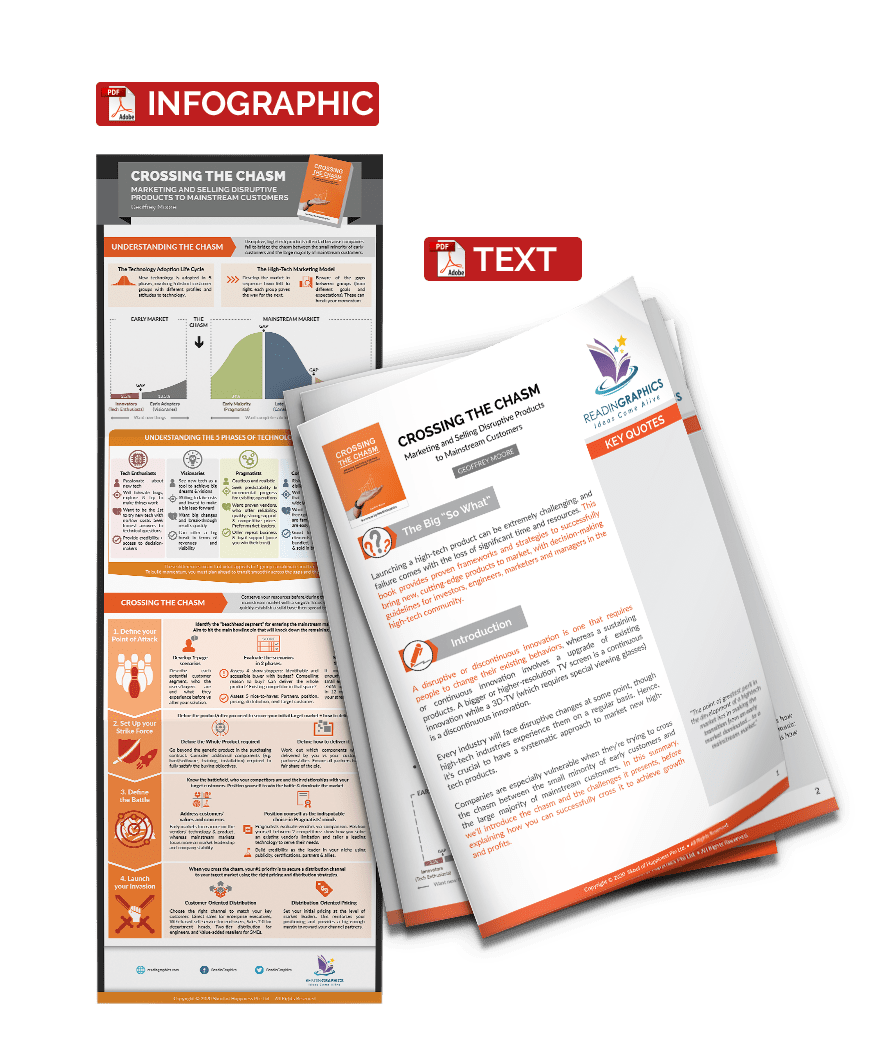 What are the key sales and marketing challenges you’ll encounter when launching a new, cutting-edge technology? What are the main differences, success factors vs pitfalls for early-markets vs mainstream markets? In this book, Geoffrey Moore explains why companies are especially vulnerable when they’re trying to cross the chasm between a small minority of early customers and the large majority of mainstream customers. He presents powerful concepts and strategies to help you bring high-tech products to market successfully and achieve growth and profits.