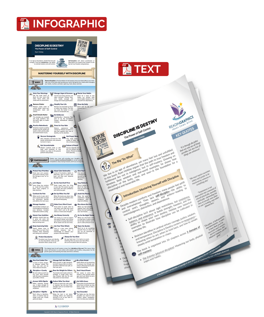Why do so many people feel lost and overwhelmed despite modern comforts and freedom? Ryan Holiday argues that true meaning and freedom comes from mastering our thoughts, desires and actions through self-discipline. Drawing on Stoic wisdom, he explores how to develop self-control to remain steady amid temptation or chaos.