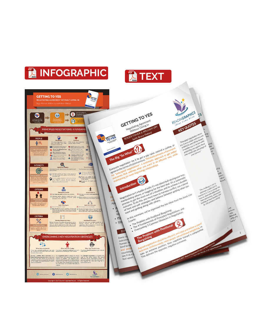 Everyone negotiates—be it to get a pay raise, extend a curfew, or reach agreement on a joint venture. This book presents a framework for “principled negotiations”: a merits-focused, systematic approach to get better outcomes while maintaining (or even improving) relationships.