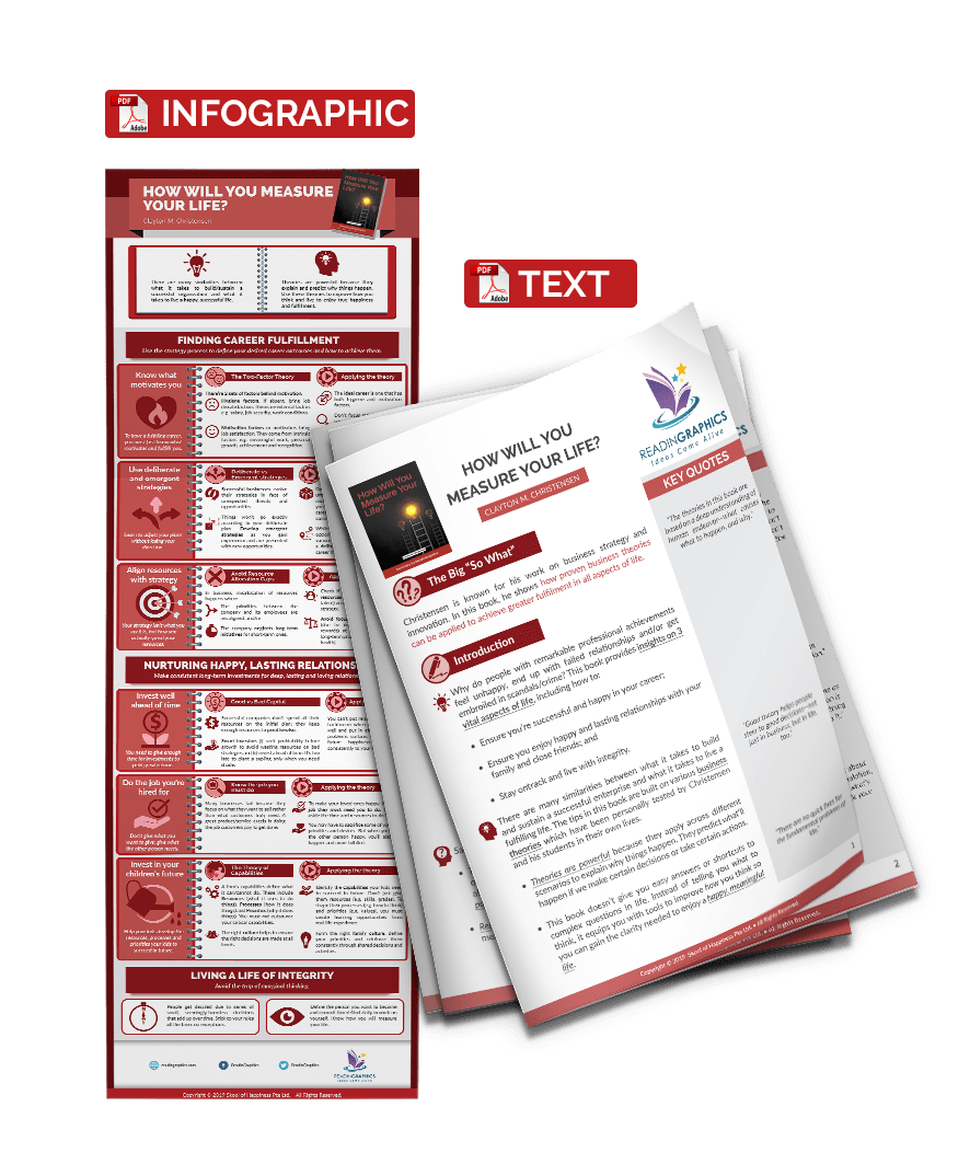 There are many similarities between what it takes to build and sustain a successful enterprise and what it takes to live a fulfilling life. In this book, Clayton Christensen shares how proven business theories can be applied to achieve greater fulfillment in all aspects of life. Such theories are powerful because they apply across different scenarios to explain why things happen, thus predict what’ll happen if we make certain decisions or take certain actions.