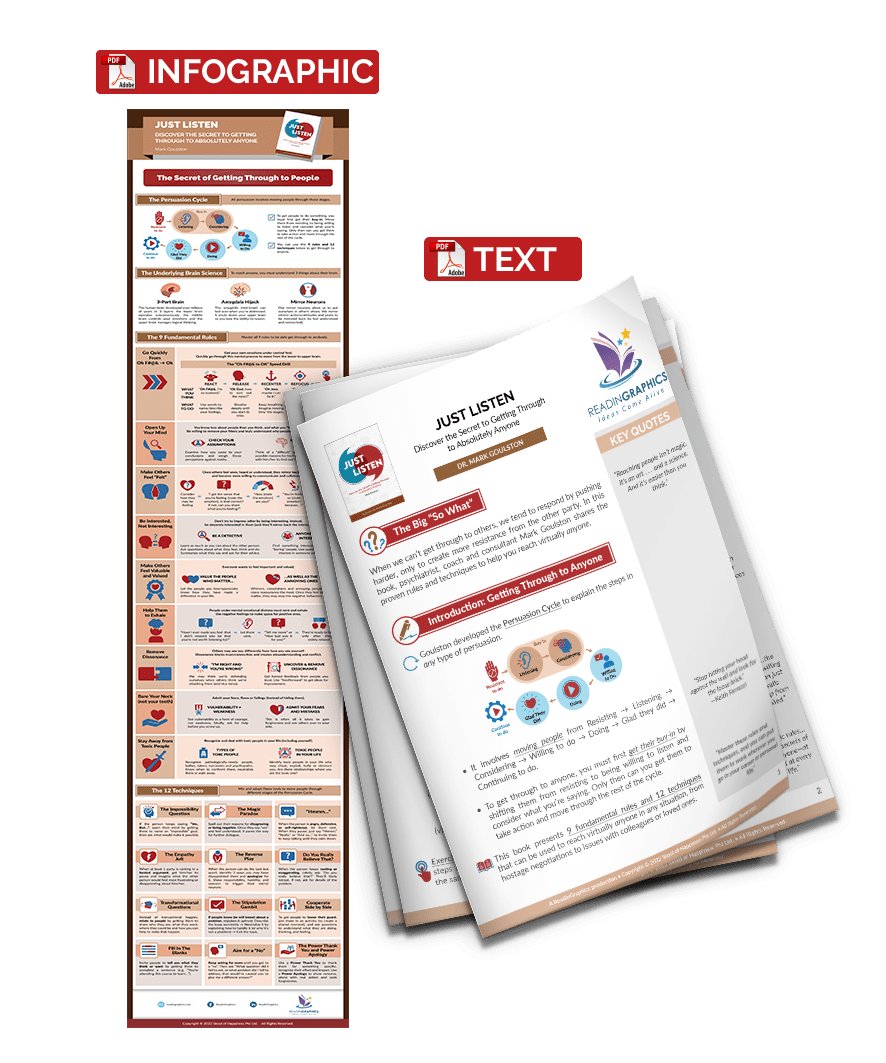 Communication is an essential part of human relations. And, it can be frustrating when we can’t get across to others. Often, we respond by pushing harder, only to create even more resistance. In this book, psychiatrist, coach and consultant Mark Goulston shares the communication rules and techniques to get buy-in, so they’ll cooperate and take action willingly.