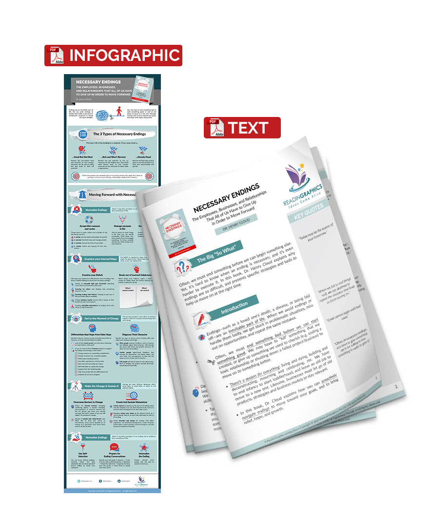 Endings—be it the death of a loved one, a divorce, or a job change—are an inevitable part of life. Yet, they make us uncomfortable because it’s human nature to avoid loss, pain and uncertainty. When we avoid endings or handle them badly, we get stuck in problematic situations, miss out on opportunities, and repeat the same mistakes. In this book, Dr. Henry Cloud presents specific strategies and tools to help us  navigate necessary endings, and move on at the right time.