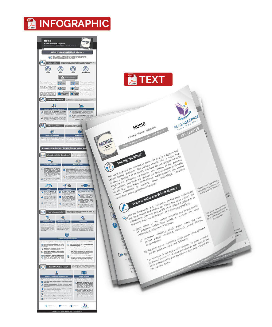 Human judgments—from forecasts to performance evaluations and forensics analyses—are inconsistent and inaccurate. Given the same context and information, different people will make different judgments or decisions. Such inconsistencies come from 2 things: noise and bias. This book explores the concept of noise—the random variability and inconsistencies in judgment which lead people to evaluate the same information differently.