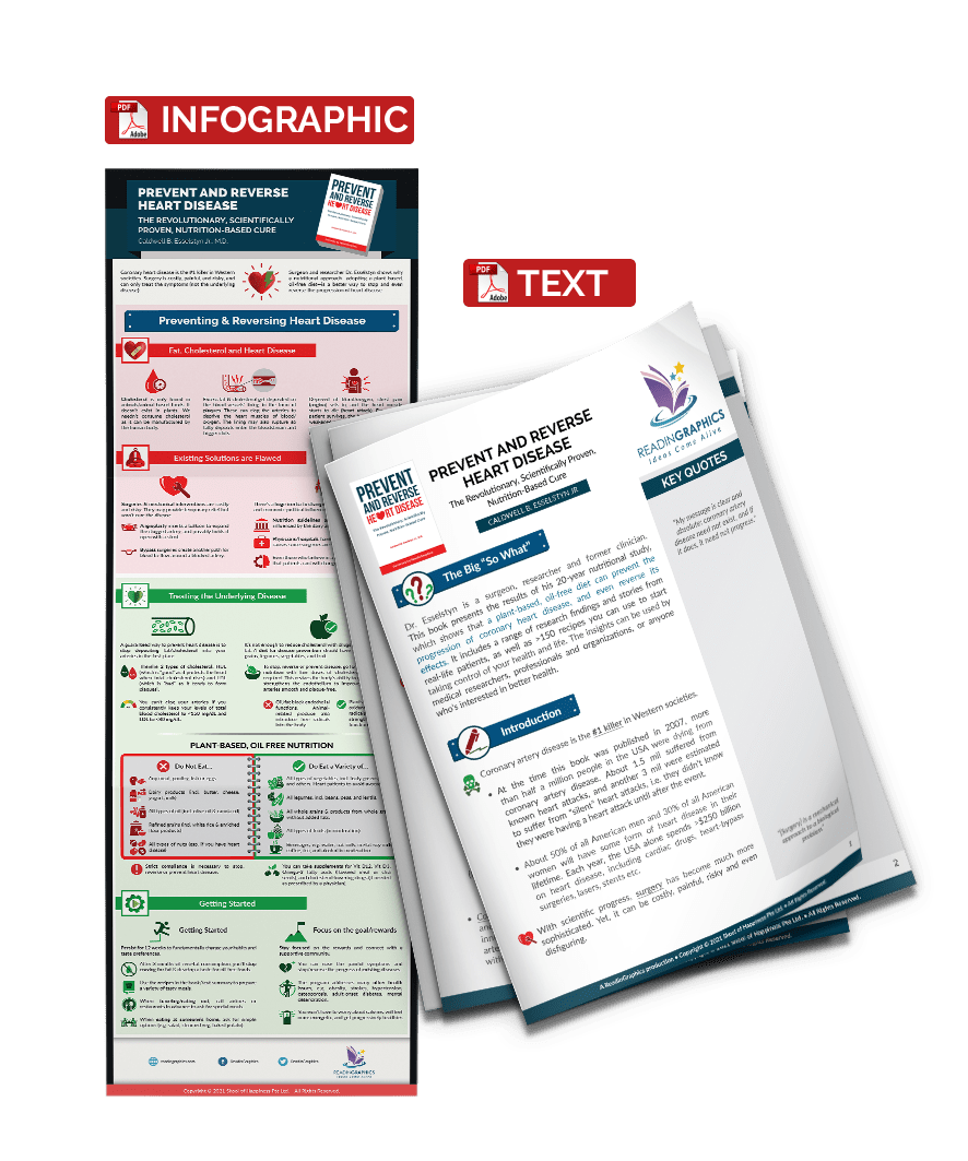 Coronary artery disease is the #1 killer in Western societies. Surgical and mechanical interventions are costly, painful, risky, and will only treat the symptoms at best. They can’t cure the disease itself, nor prevent its development or progression.  In this book, surgeon, researcher and former clinician Dr. Caldwell Esselstyn Jr. shares the results of his 20-year nutritional study to show why/how a plant-based, oil-free diet can prevent the progression of coronary heart disease, and even reverse its effects. This approach also works for many other types of chronic diseases. Such insights are useful for any medical researcher/professional, or people who’re interested in improving their health.