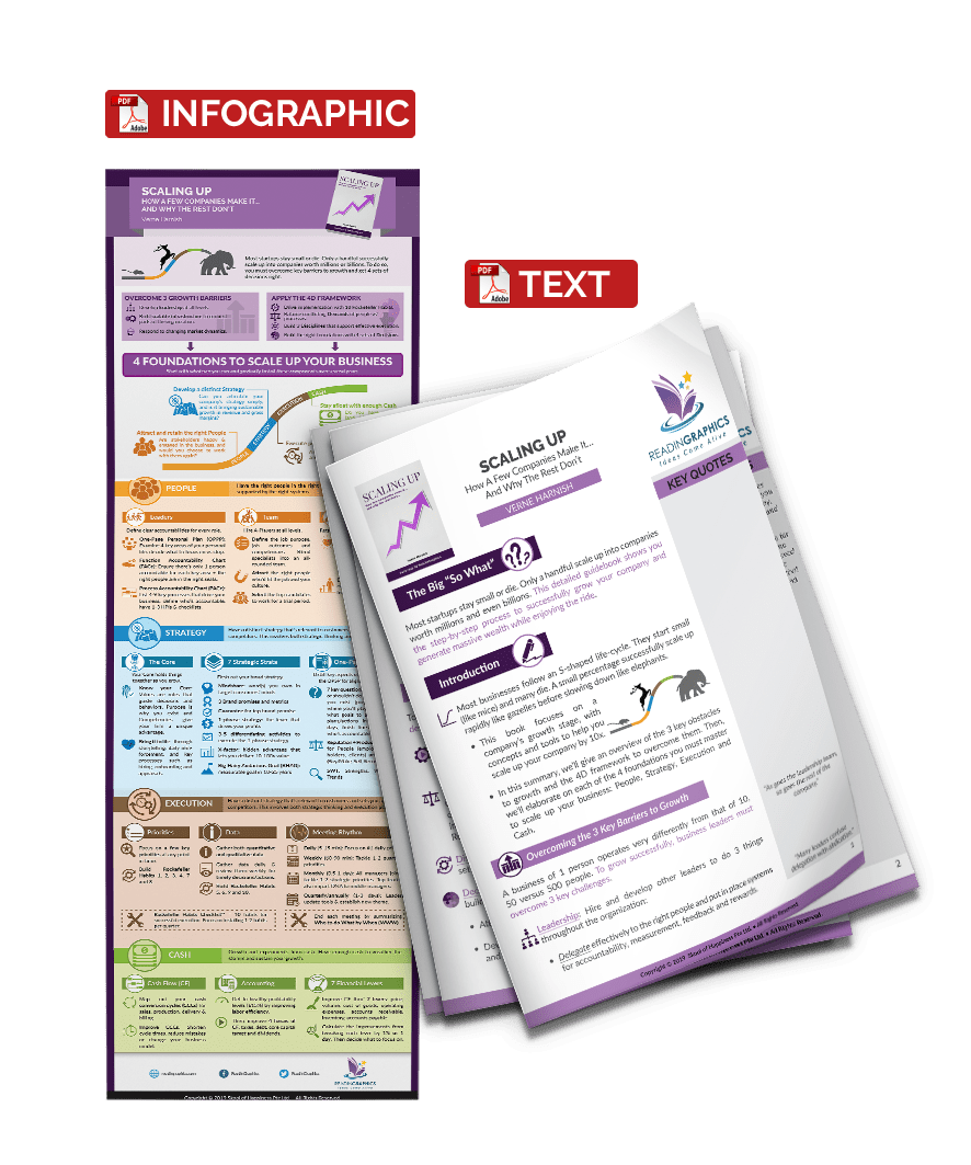 Most businesses stay small and die. Only a handful successfully scale up into companies worth millions and even billions. Scaling Up is a guidebook that explains the step-by-step process to overcome 3 key obstacles to growth and successfully scale up your business by 10 times.