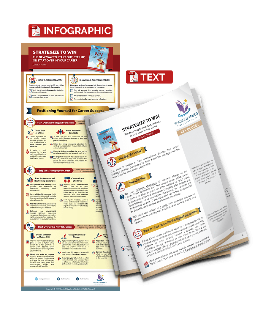 We face different challenges at different phases of our career. Fresh graduates may feel unsure about which career to pursue or what to focus on. After working for 5-10 years, professionals often find themselves struggling with changes and uncertainties, or to re-orientate themselves for personal and professional success. These difficulties are further compounded by dynamic environments and financial downturns. In this book, Carla Harris helps you to develop your career strategy, position yourself for your dream job, figure out the next steps for your career progression.