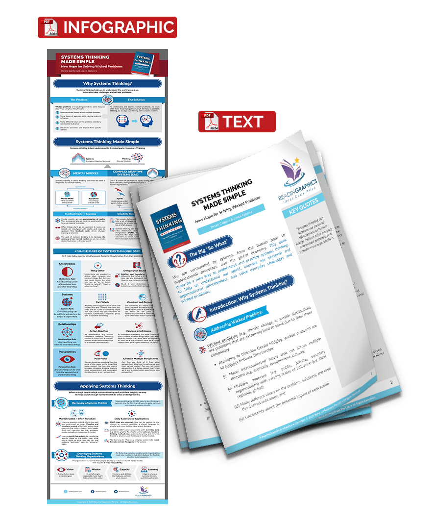 To understand and address complex problems, we need to think in terms of systems. This book by Derek Cabrera and Laura Cabrera presents 4 powerful rules that anyone—from school children to rocket scientists—can apply to learn, practice, and master systems thinking, improve your personal/professional effectiveness, and solve everyday challenges and wicked problems.