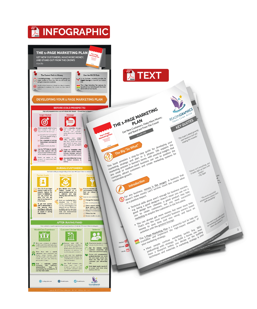 For any business, money is like oxygen–you need it to survive. And, in any business, marketing always provides the biggest leverage. A 10% improvement in marketing skills can generate an exponential improvement in your bottom line. Yet, many many business people find marketing to be overwhelming or confusing. They confuse strategy and tactics, and waste time/money on activities that are ineffective. The 1-Page Marketing Plan distills the marketing planning process into a 9 sets of key activities spread over 3 phases, to help you position your company, attract customers and create marketing systems for sustainable growth. These represent the 20% of critical activities that will deliver 80% of your results, and are especially useful for small and medium business.