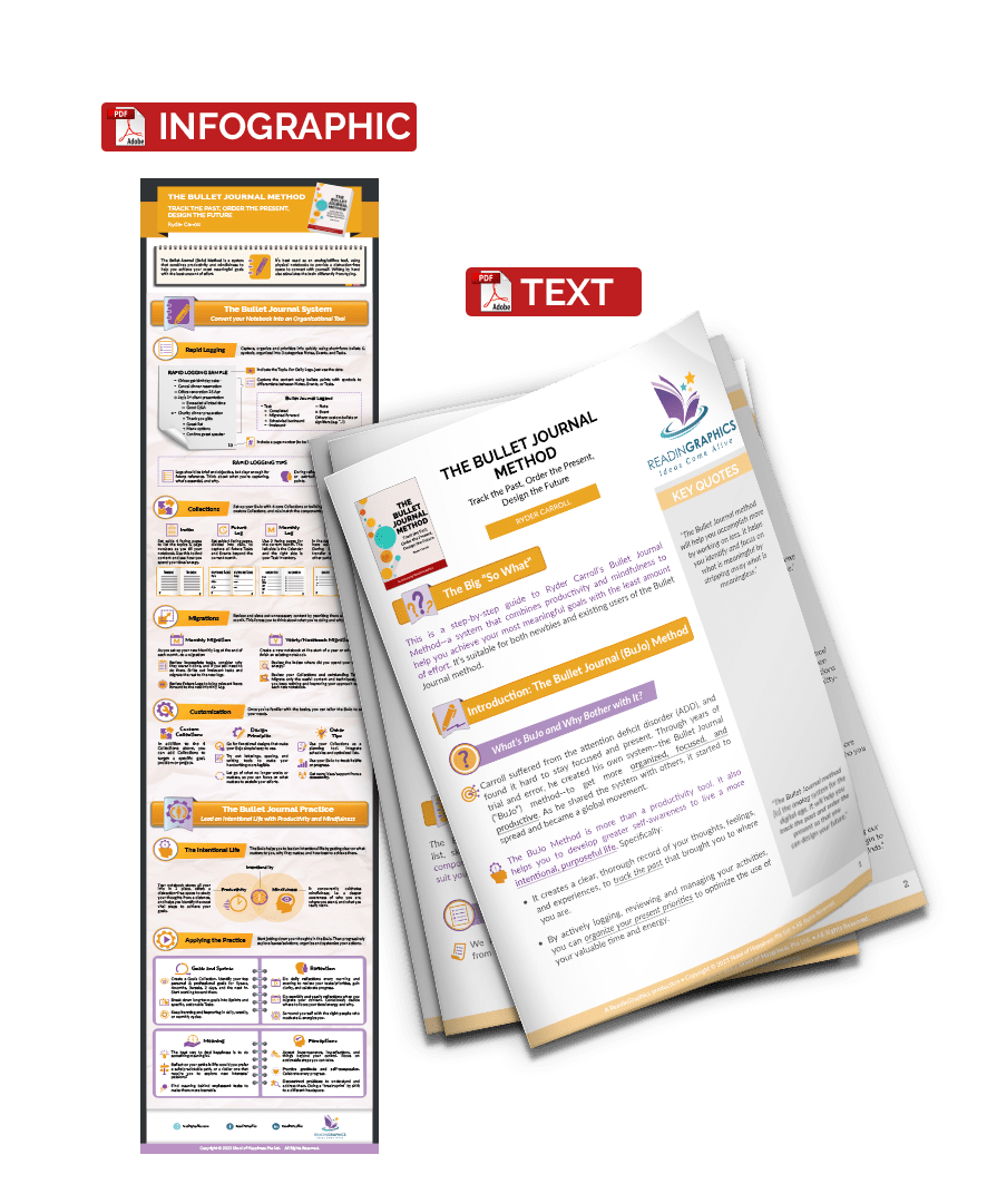 The Bullet Journal Method (or “BuJo Method” for short) is an analog journalling system that helps you to capture and organize all your information in 1 place, examine your thoughts and challenges from a distance, identify the best-possible actions, and cultivate mindfulness to lead a purposeful life. This book explains the Bullet Journal system, along with a range of productivity and mindfulness practices to unlock the most benefits from your BuJo.