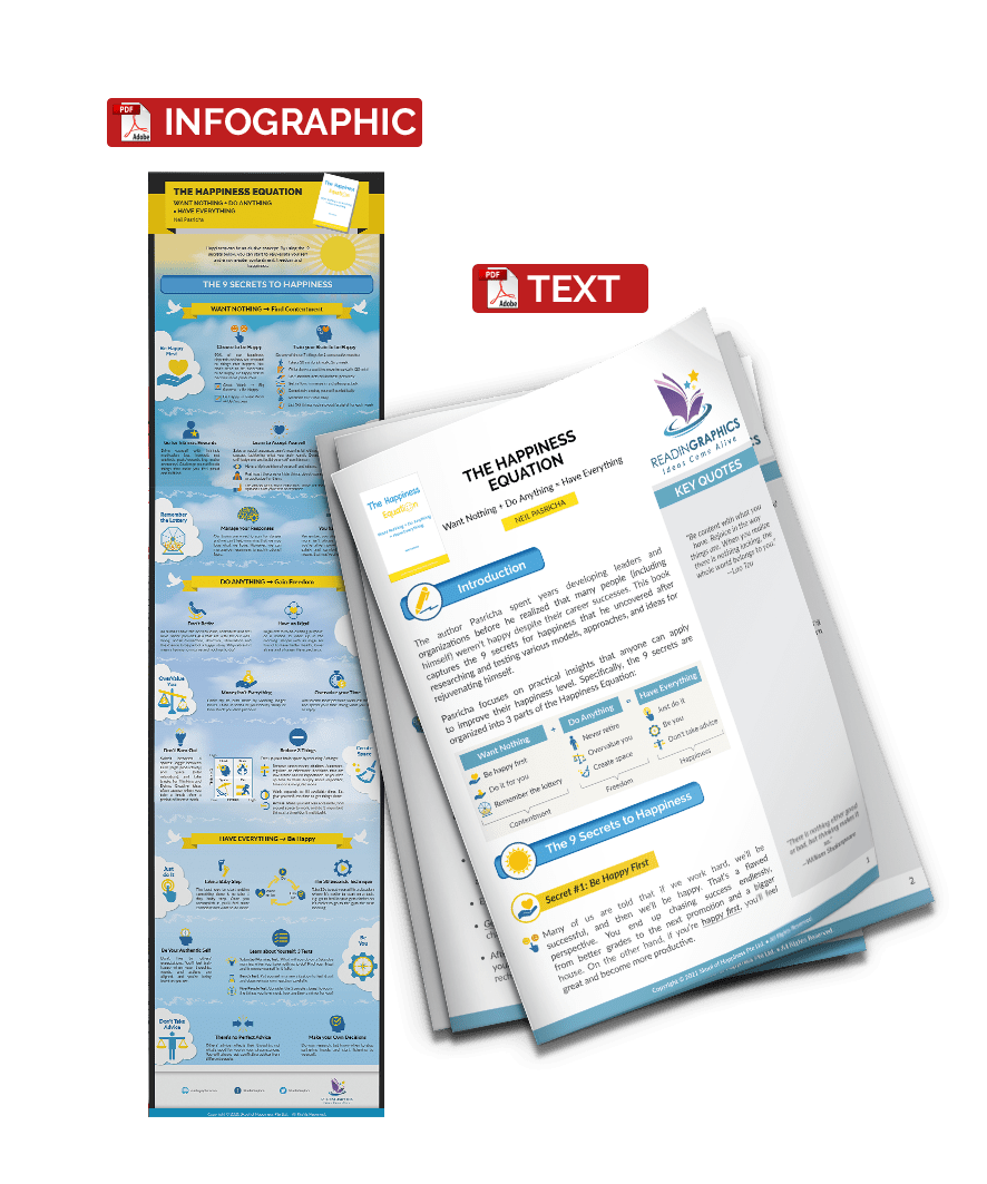 Do you know of people who just don’t feel happy despite their career or personal successes? In this book, Neil Pasricha shares the insights he gathered after years of researching and testing models and practical ideas for rejuvenation and improving one’s happiness levels. Learn the 9 secrets of the Happiness Equation, which will help you to want nothing, do anything, and have everything!