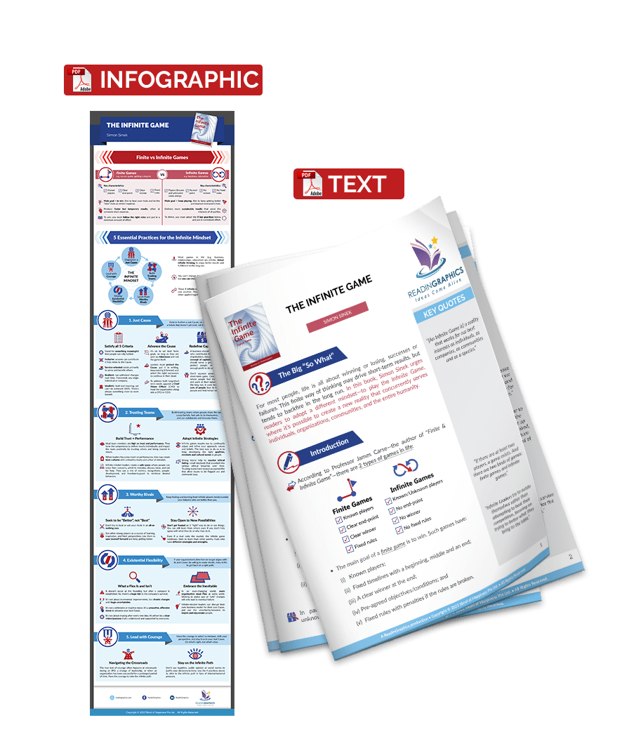 For most people, life is all about winning or losing, successes or failures. This finite way of thinking may drive short-term results, but tends to backfire in the long run. In this book, Simon Sinek urges readers to adopt a different mindset—to play the Infinite Game, where it’s possible to create a new reality that concurrently serves individuals, organizations, communities, and the entire humanity.