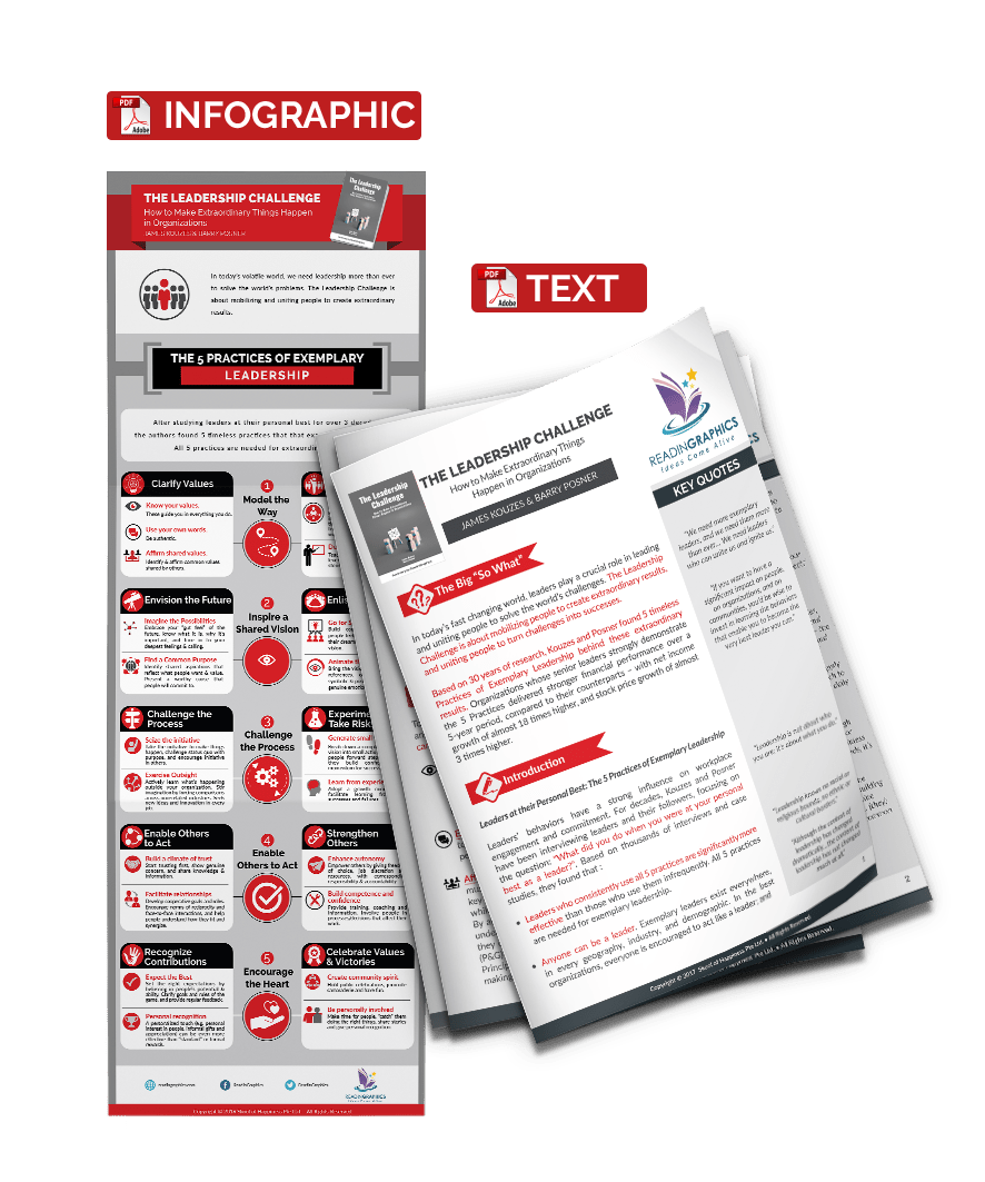 • The 5 practices of exemplary leadership, with specific tips and examples to: Model the Way, Inspire a Shared Vision, Challenge the Process, Enable Others to Act, and Encourage the Heart