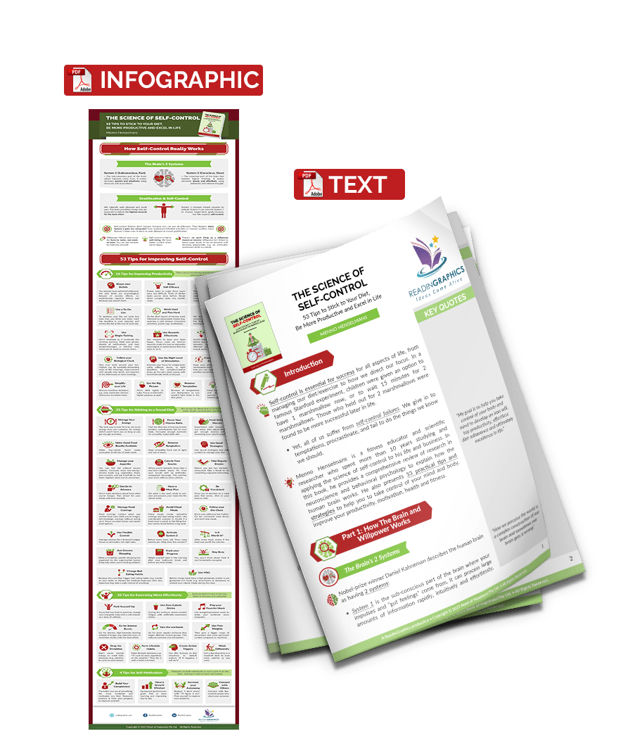 53 practical tips/strategies (along with their scientific background) to improve your self-control in real life. These include: 16 tips for improving productivity, 23 tips for sticking to a sound diet, 10 tips for exercising more effortlessly, and 4 tips for improving your self-motivation.