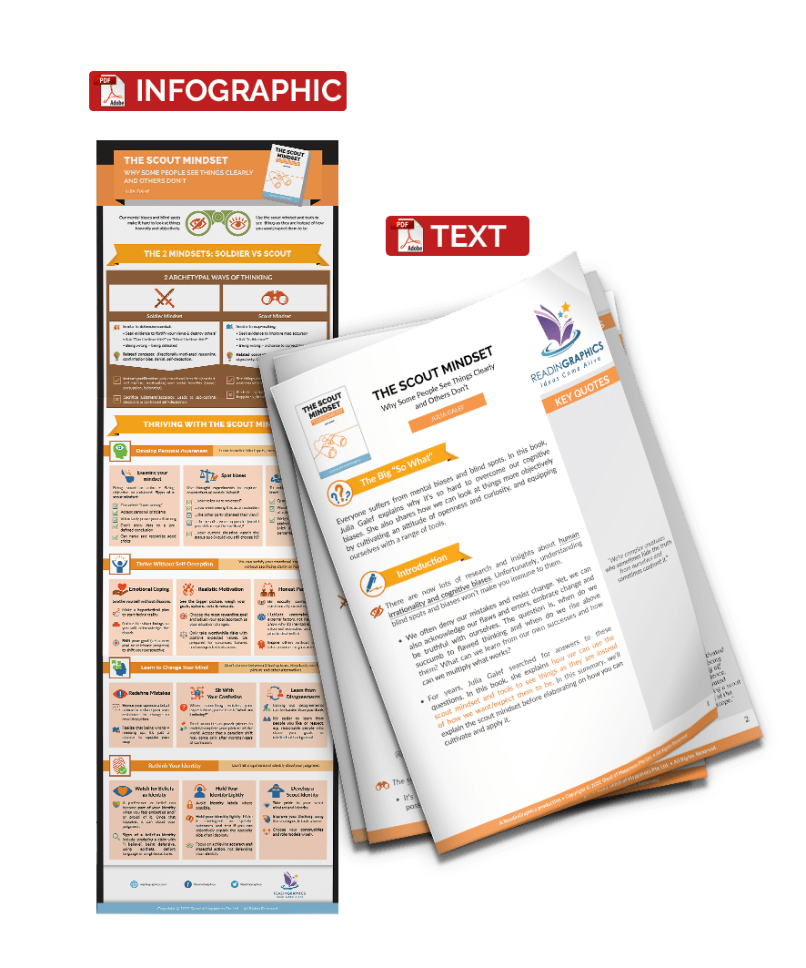 • The difference between the Soldier Mindset vs the Scout Mindset. Understand why we default to the soldier mindset and why it hurts us in the long term;