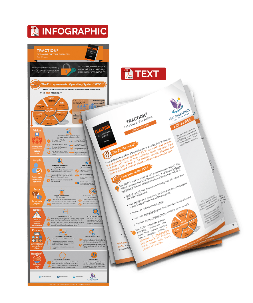 • The 6 core fundamentals needed to grow a scaleable business, including how to (i) develop & communicate a strong vision, (ii) find the right people and put them in the right seats, (iii) use data to stay on top of your business, (iv) build a solutions-oriented environment where issues are surfaced and addressed, (v) systemize your core processes into 1 operating system and (vi) gain traction to bring your vision to life.