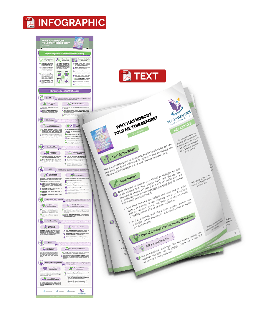This book serves as a practical guide to managing your mental and emotional health. It distills over a decade of Dr. Julie Smith’s clinical psychological practice into key insights and tools that anyone can apply to improve their mental-emotional wellness.