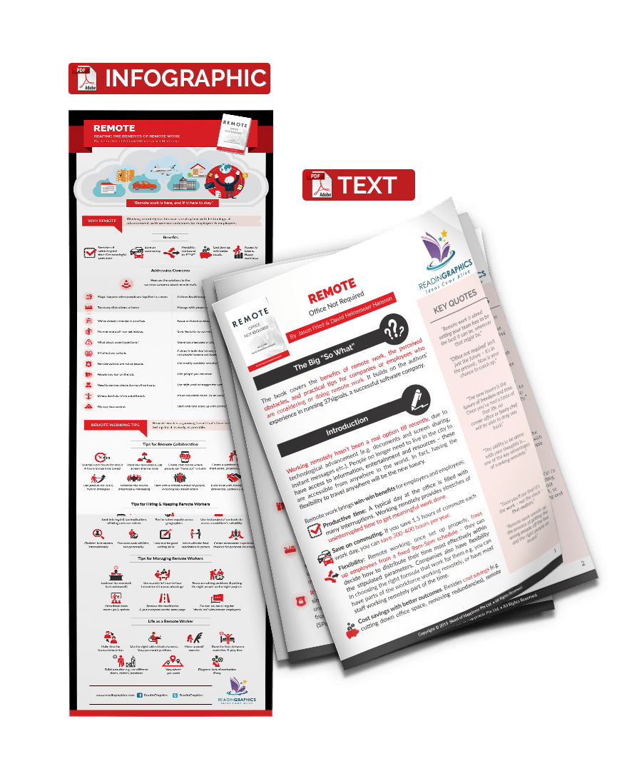 This book covers the benefits of remote work, the perceived obstacles, and practical tips for companies or employees who are considering or doing remote work. It builds on the authors’ experience in running 37signals, a successful software company (now known as Basecamp).
